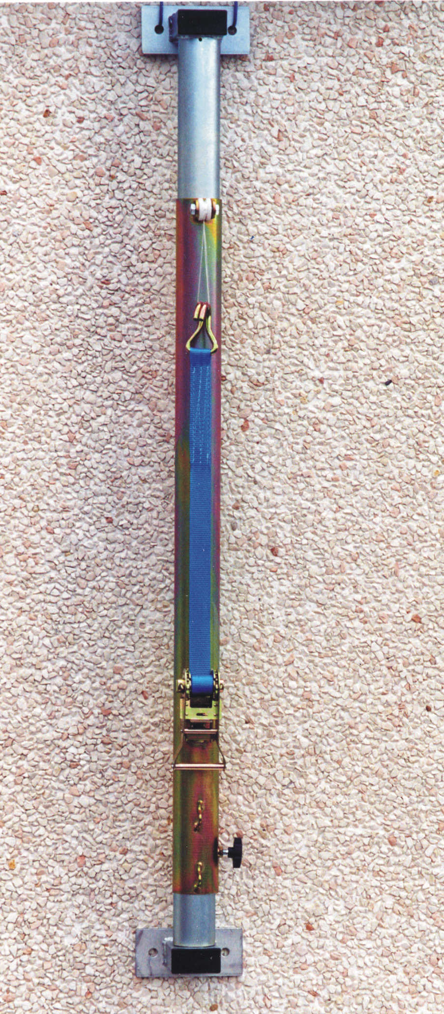 Impianto pallavolo a parete con cursori manuali, in acciaio zincato.