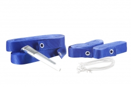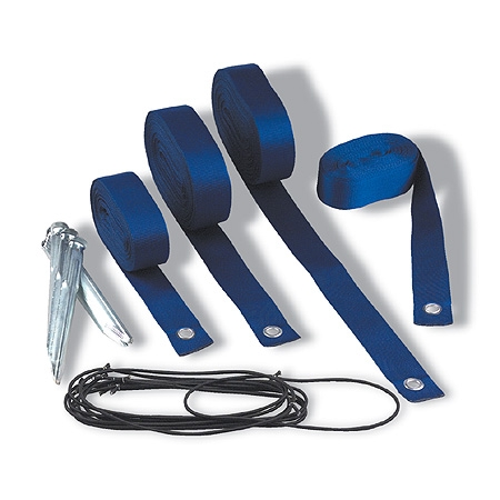 Nastro segnacampo completo di ancoraggi, set 1 campo set nastri segnalinee per campi da beach-volley comprendenti: - 2 nastri mt.16 mm.50 occhiellati s.teste - 2 nastri mt.8, mm.50 c.s. - 8 elastici ed 8 picchetti in acciaio.