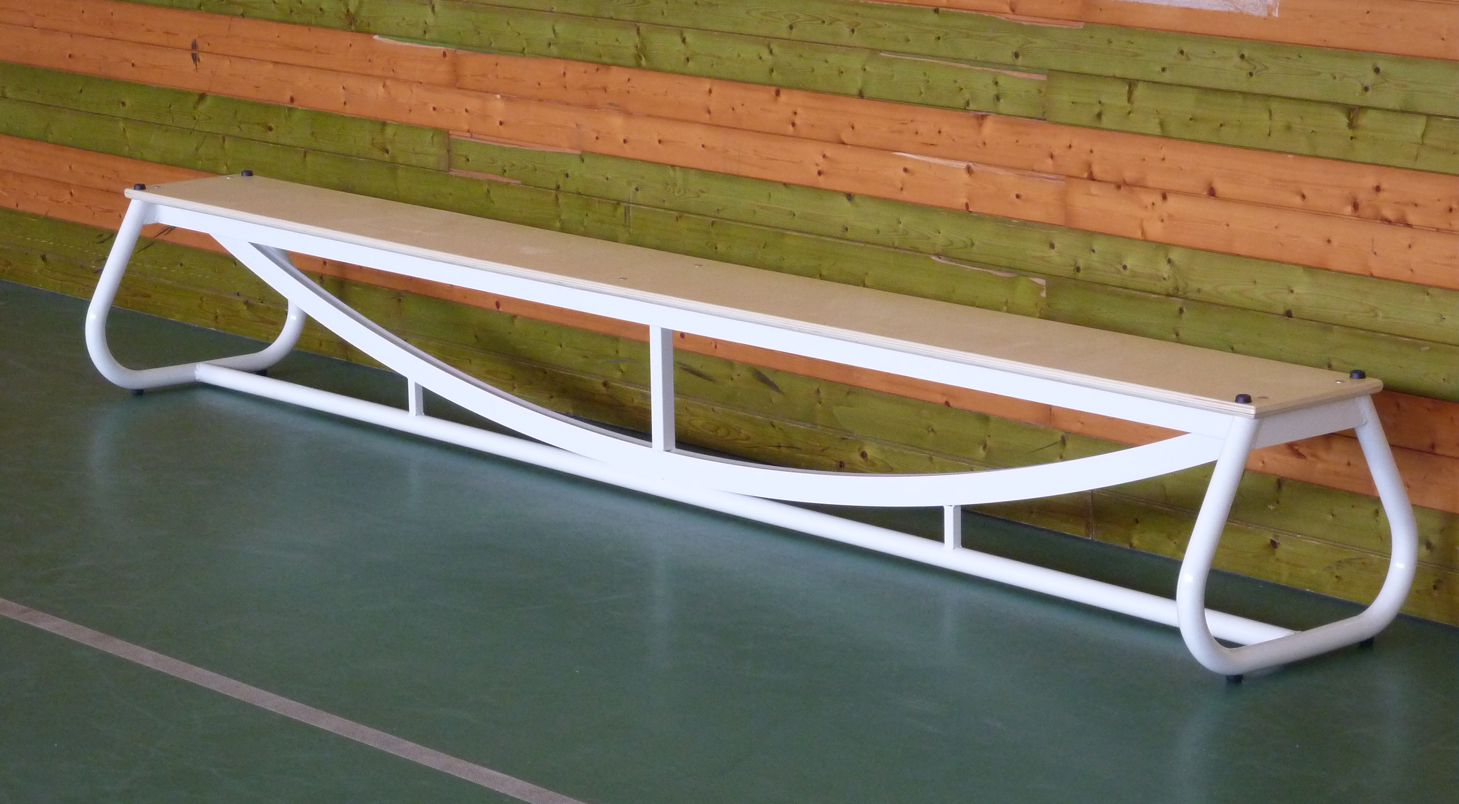 Panca svedese senza asse di equilibrio in legno, struttura tubo di alluminio verniciato ø 40 mm., piano in legno lunghezza cm 300, larghezza cm.30, spessore mm.20, altezza da terra cm.40.