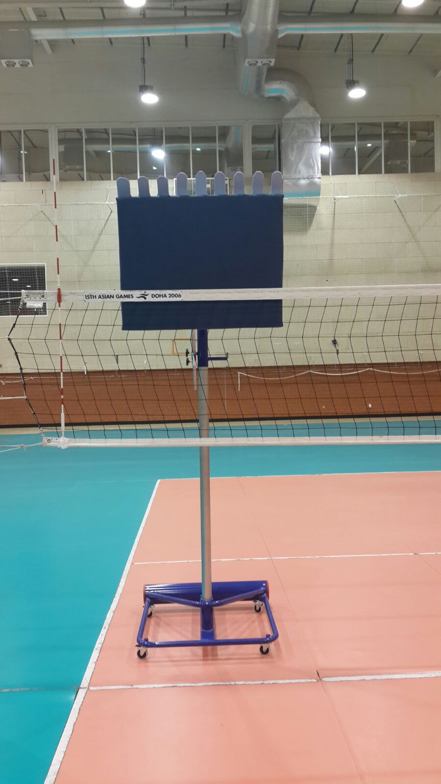 Simulatore di muro per pallavolo su base zavorrata con ruote autobloccanti.