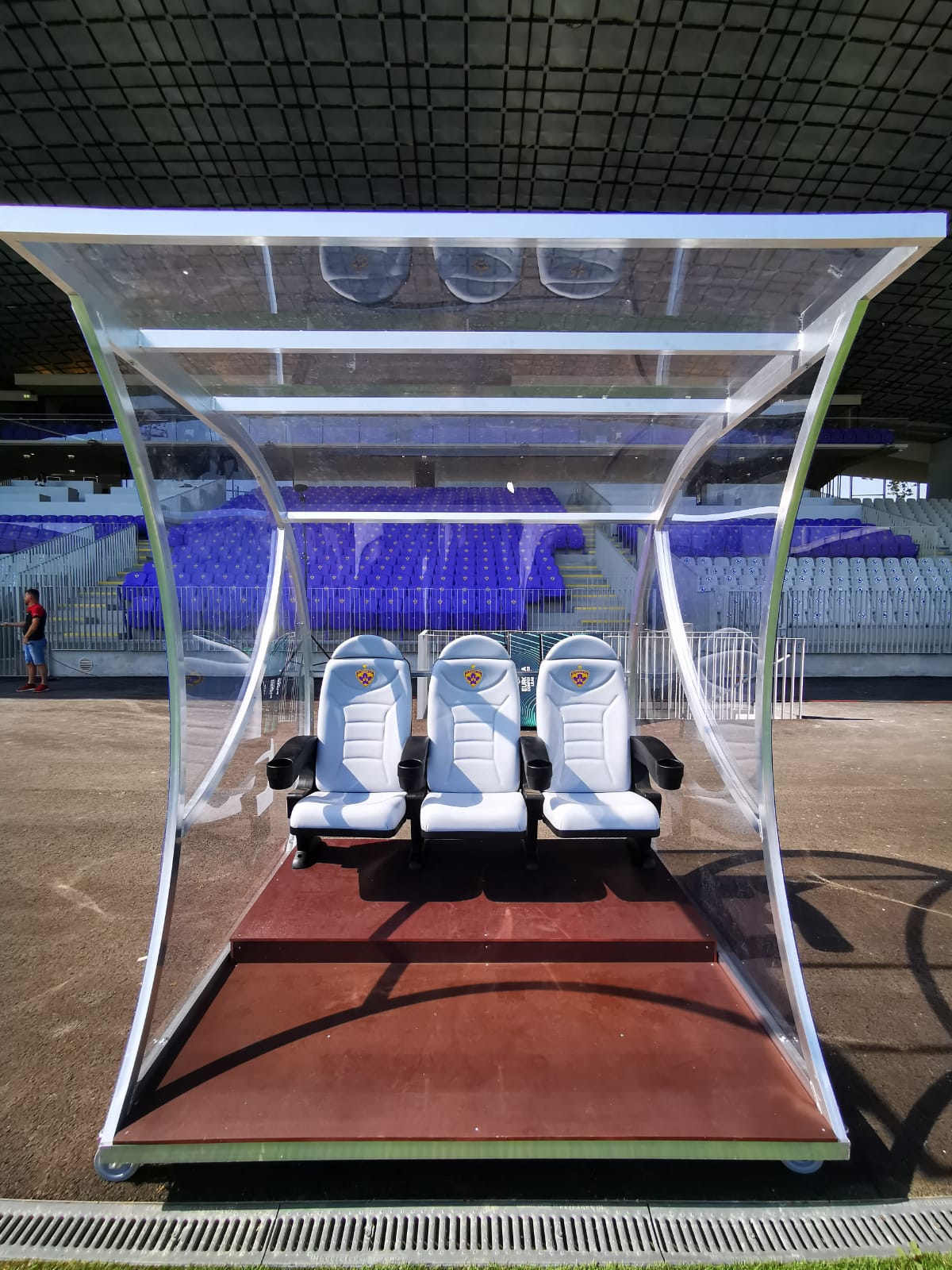 - 6206 - Panchina Bordo Campo Modello "World Cup", struttura in alluminio, policarbonato compatto trasparente, con sedili "VIP"