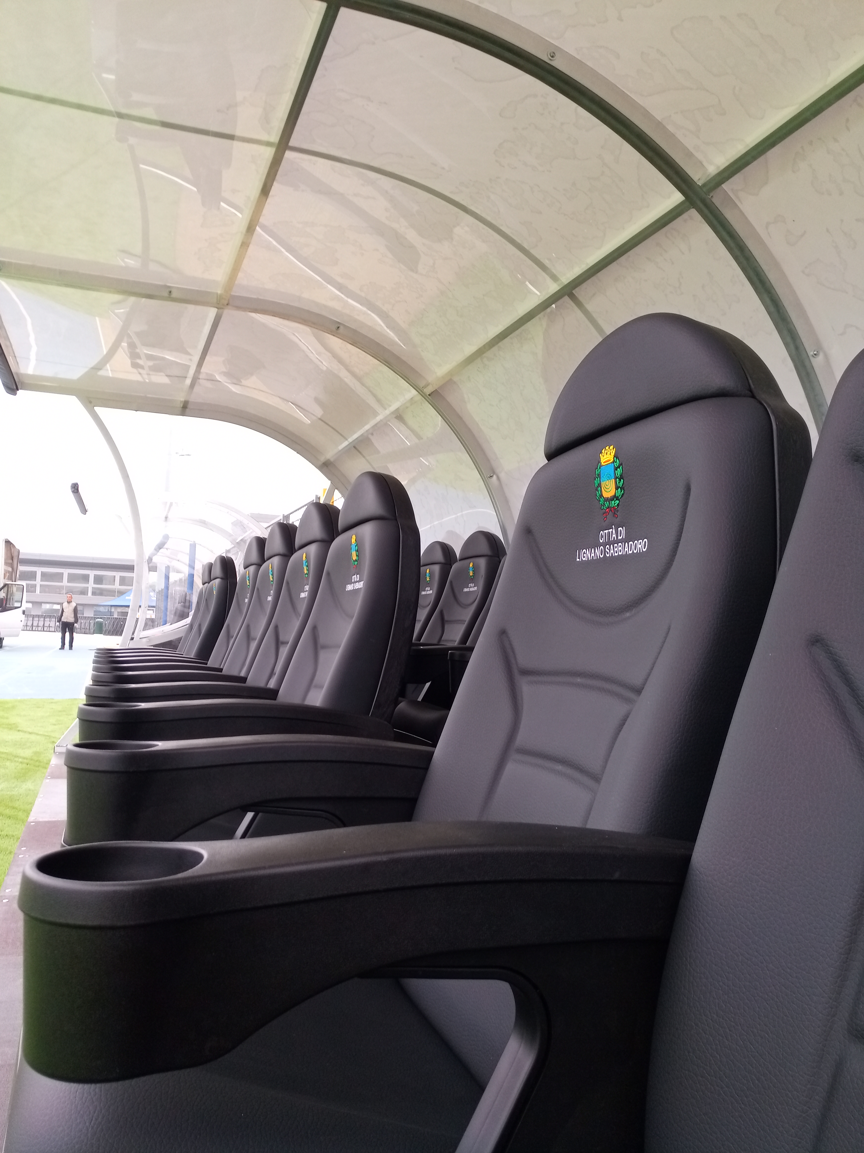 Panchine modello "World Cup" allo Stadio Teghil di Lignano Sabbiadoro (VE).