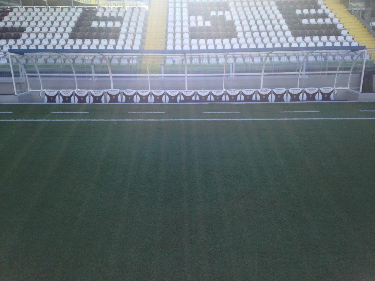 Realizzazione di tre panchine bordo campo modello "World Cup" (nostro articolo 6206), con una capacità totale di 56 posti a sedere, complete di…