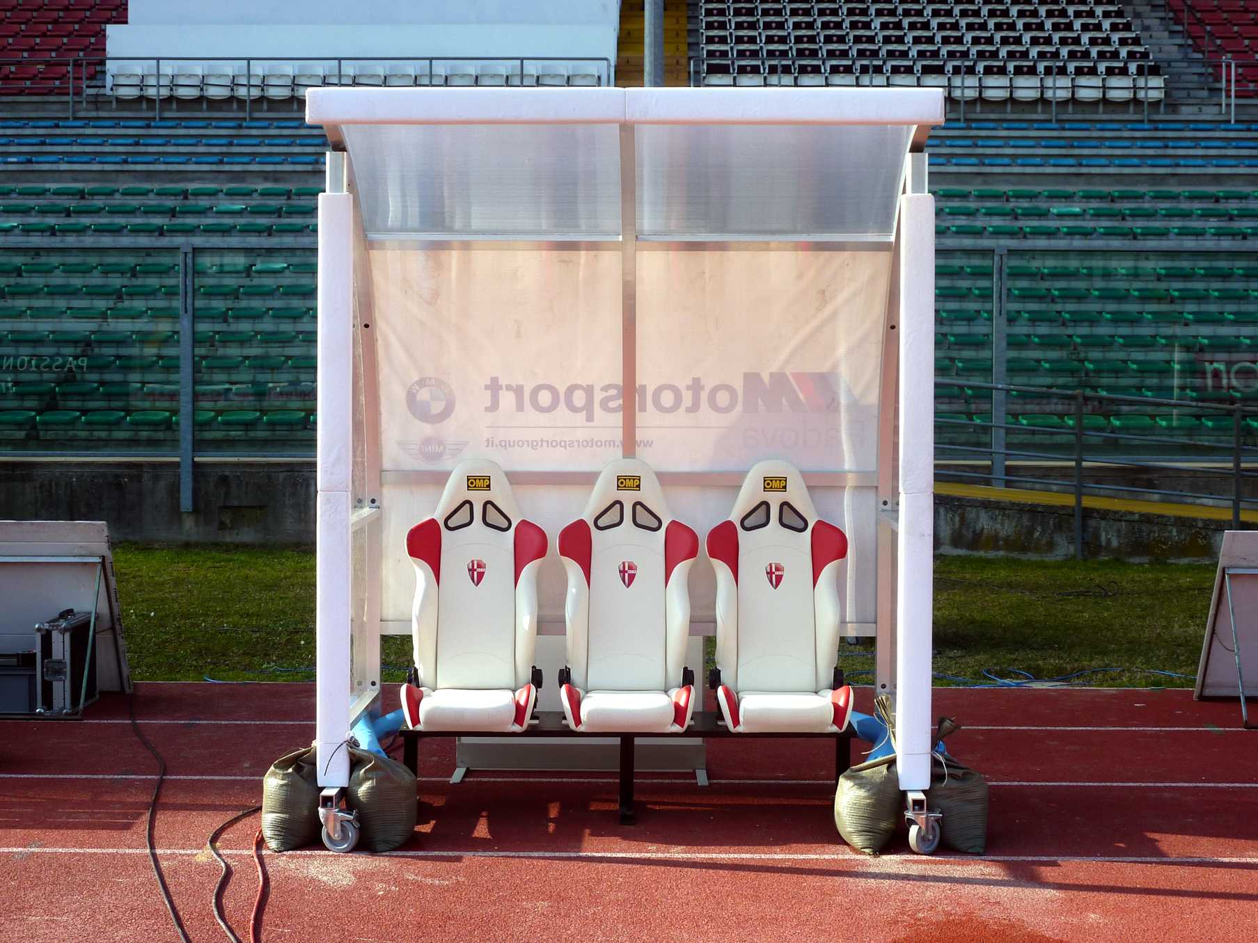 Realizzazione di tre panchine bordo campo modello "World Cup" (nostro articolo 6206), con una capacità totale di 56 posti a sedere, complete di…